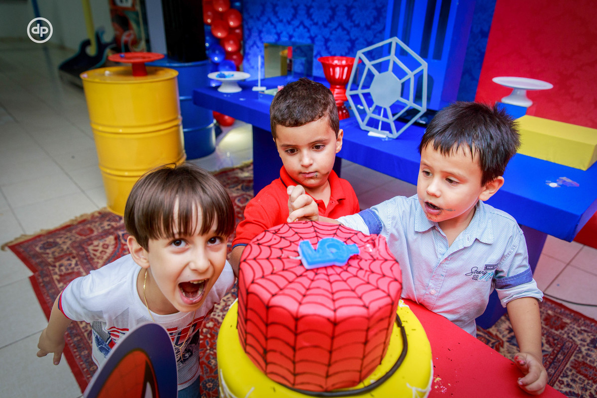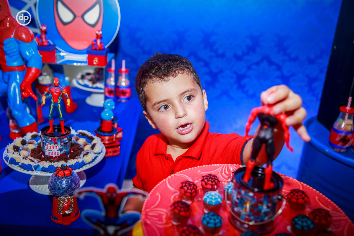 O João Emílio é apaixonado por festas, todos os anos ele escolhe com muito critério o tema do seu aniversário. Esse ano o tema escolhido por ele foi o do homem aranha, aí a mamãe Carolina e o papai Luiz fizeram tudo com muito carinho, para que ele pudesse aproveitar ao máximo seu dia!