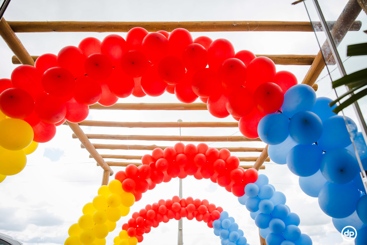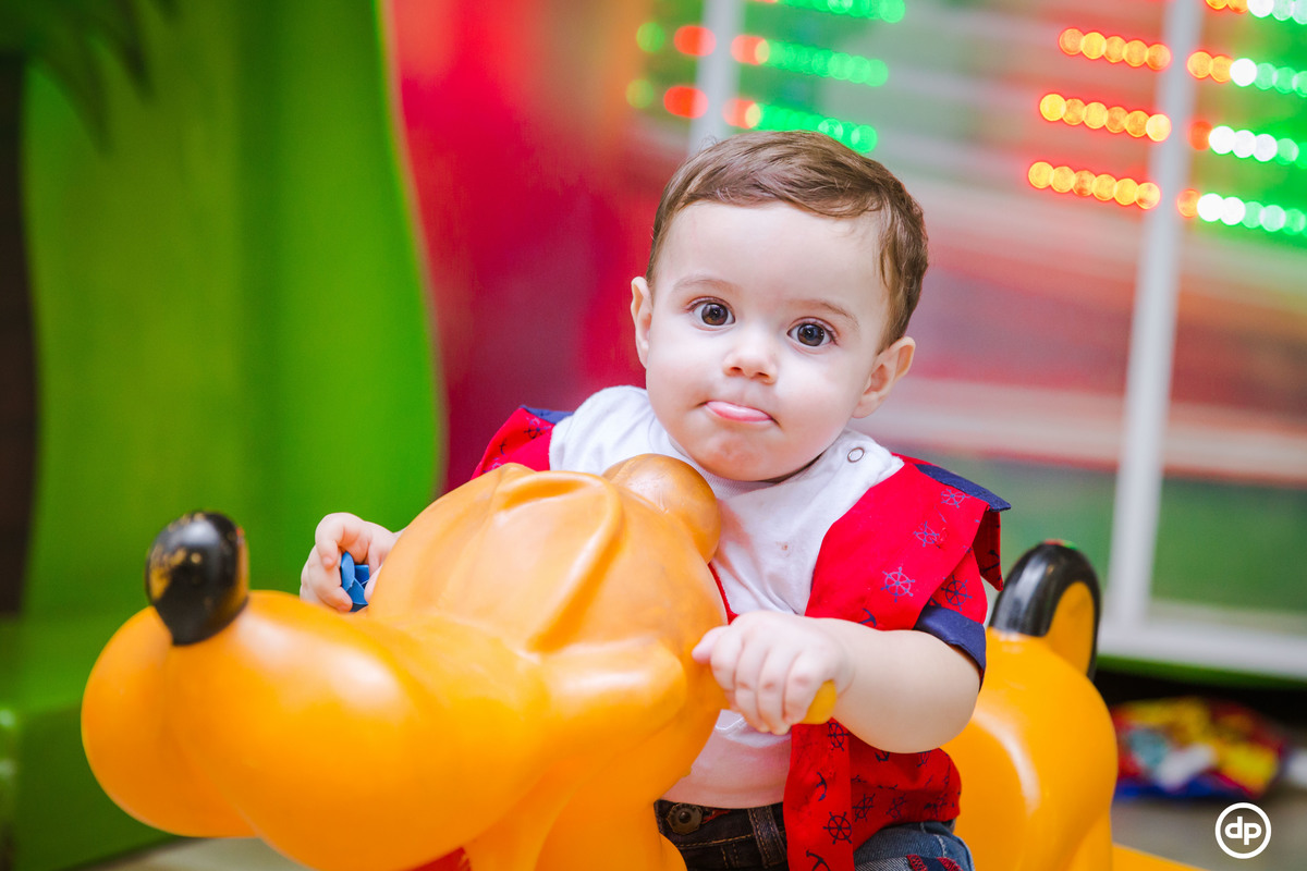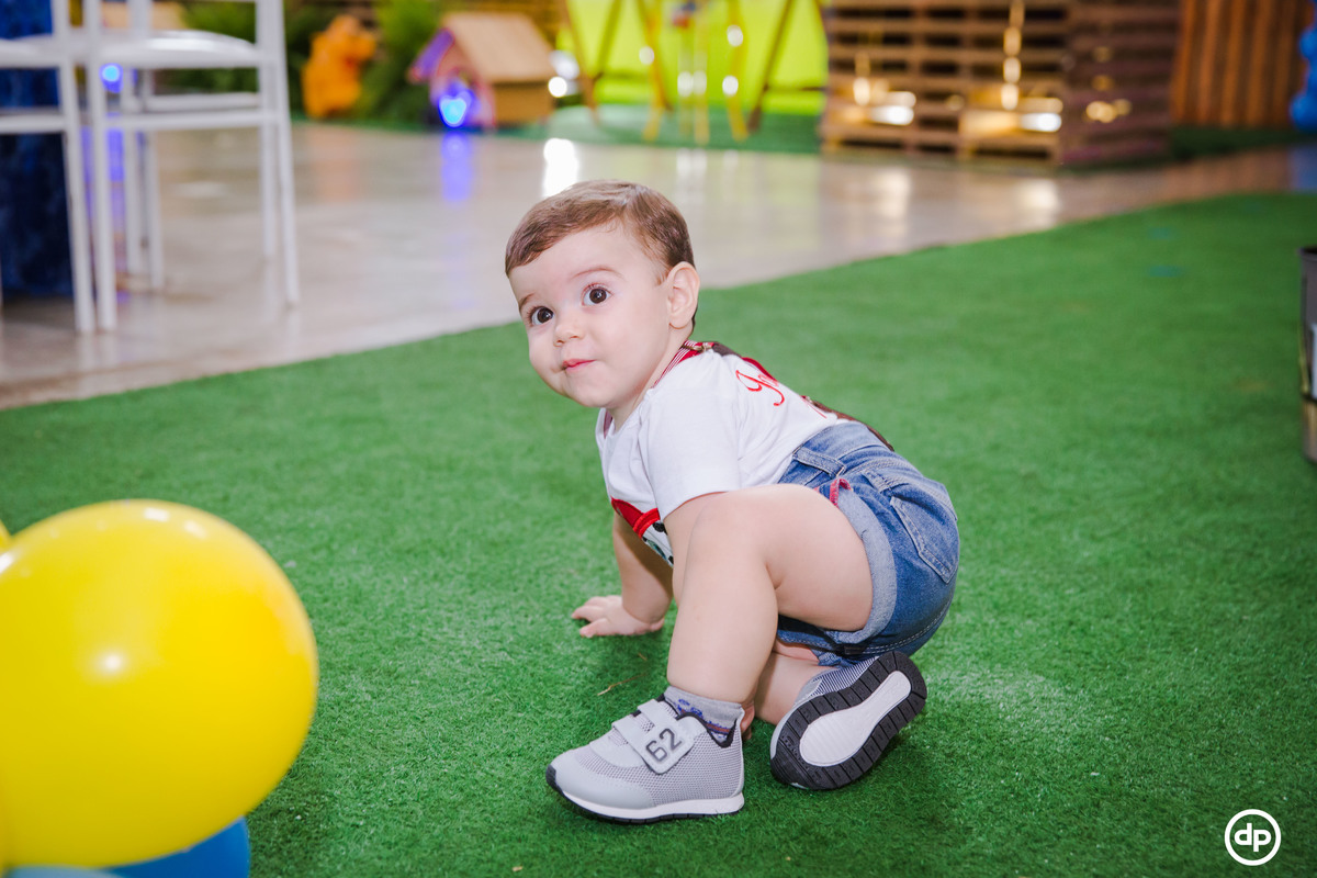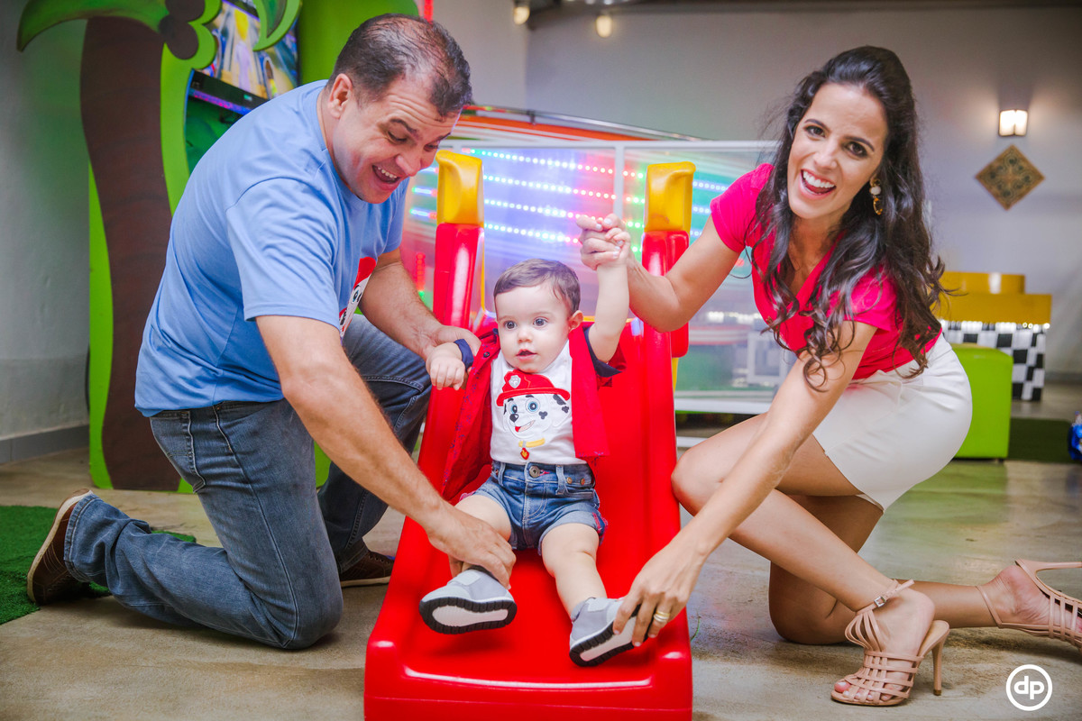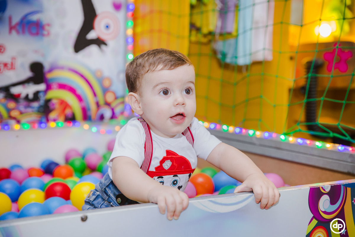 Uma família querida e cheia de amor. Um bebê sorridente e feliz, que aproveitou todos os detalhes de sua festa, mas se apaixonou pela piscina de bolinhas.
